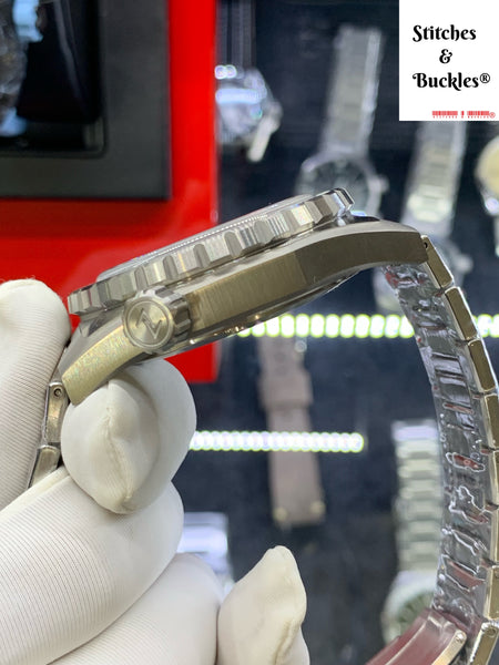 Bezel: 120 Click Uni-directional bezel with Ceramic insert, mounted on ball bearings